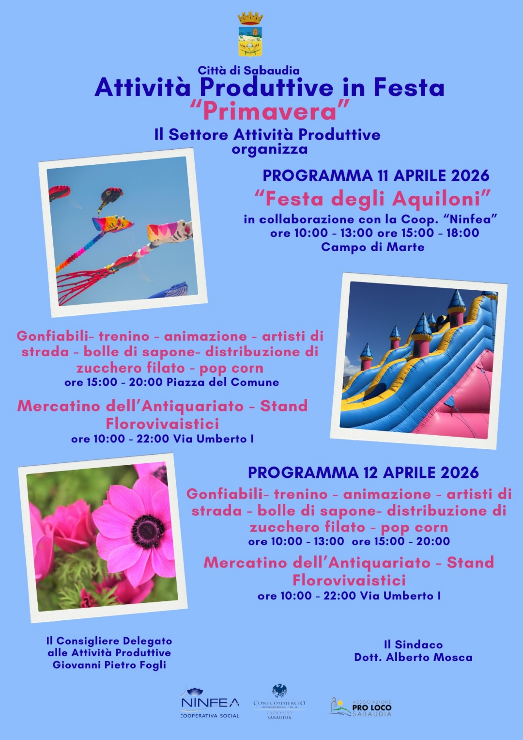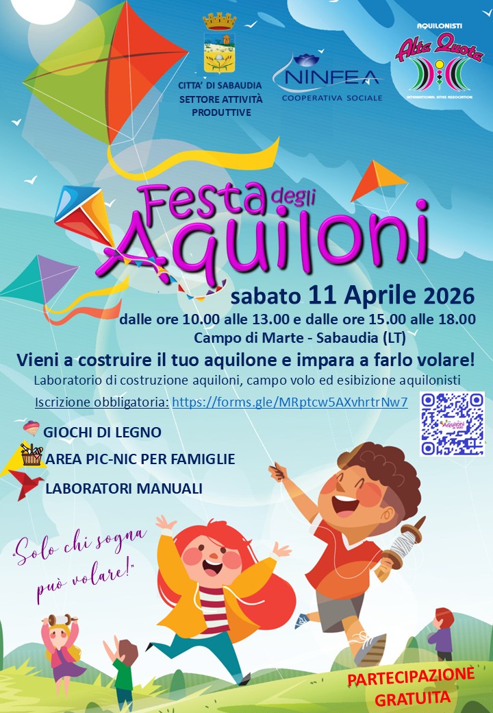 “Anche quest’anno abbiamo voluto organizzare questa festa per offrire alle famiglie un’occasione di incontro e spensieratezza. In un tempo in cui tutto corre veloce, fermarsi a guardare un aquilone che vola può sembrare un gesto semplice, ma è proprio da questi momenti che nasce il senso di comunità. Vogliamo che Sabaudia sia anche uno spazio di condivisione, sorrisi e leggerezza”. Così il consigliere delegato alle Attività Produttive e Turismo, Giovanni Pietro Fogli, ideatore della Festa degli Aquiloni, in collaborazione con Ninfea, Pro Loco Sabaudia e Associazione Commercianti.